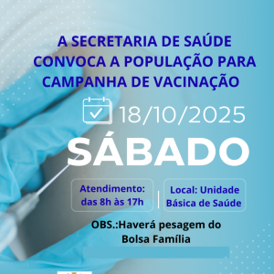 ATUALIZAÇÃO DE CADERNETAS DE VACINAÇÃO: SECRETARIA DE SAÚDE REALIZA CAMPANHA NESTE SÁBADO (18 DE OUTUBRO)