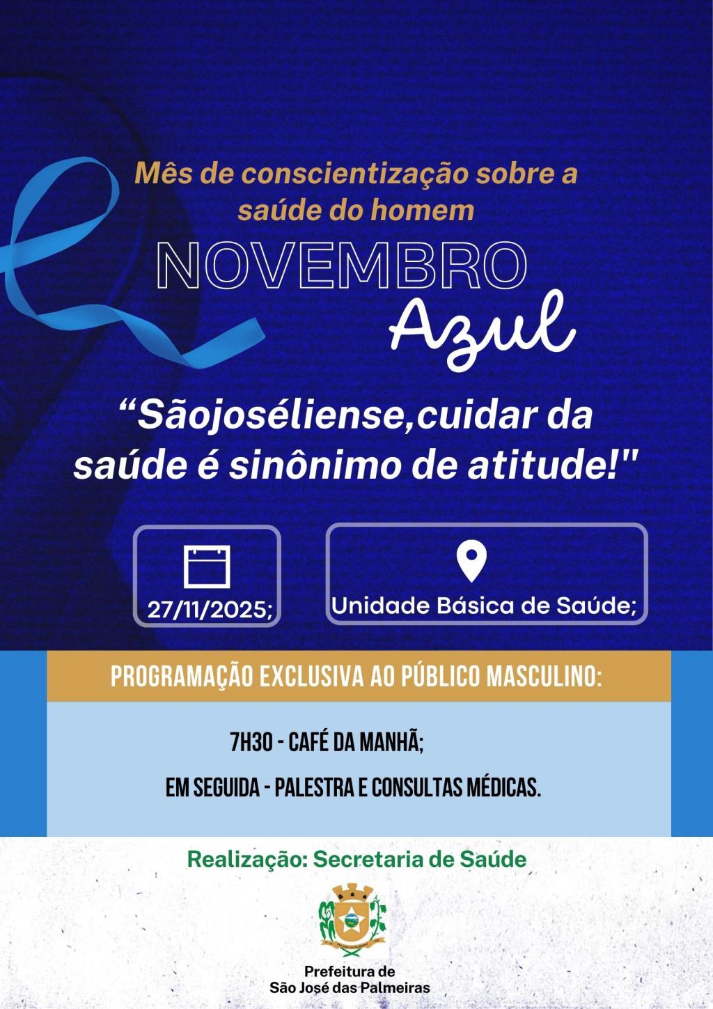 A Prefeitura de São José das Palmeiras, por meio da Secretaria de Saúde convida a população masculina do município para participar do "Dia D" de conscientização e prevenção voltado à Saúde e ao bem-estar do homem.