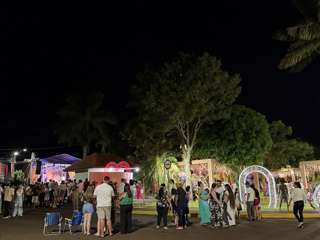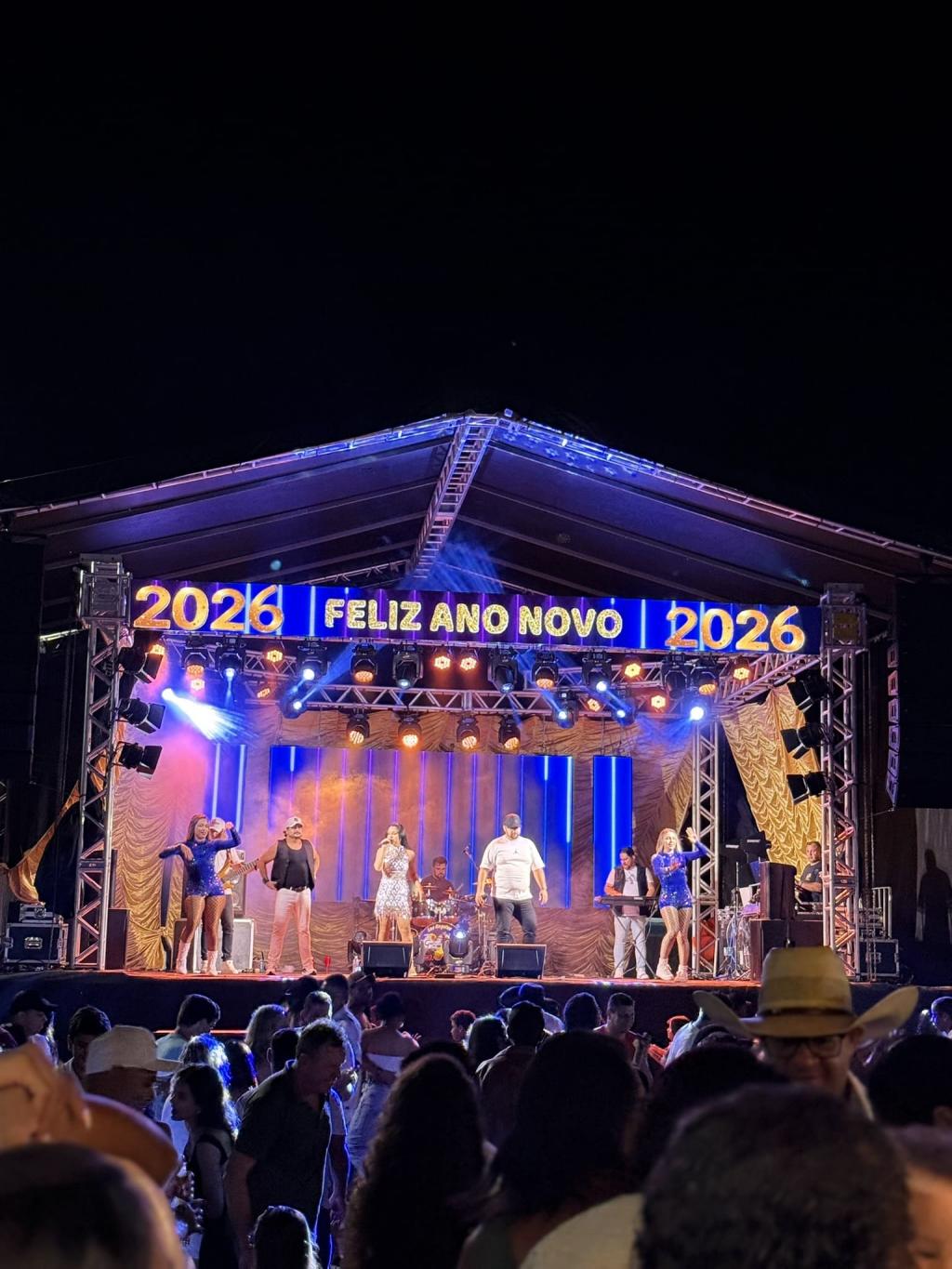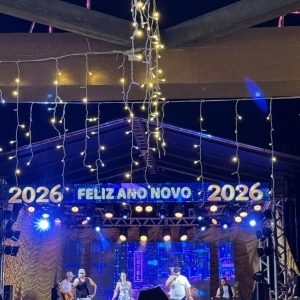 O evento promovido pela Administração Municipal, contou com a tradicional queima de fogos e show musical da banda Cowboys do Asfalto, que embalou o público na recepção de 2026.