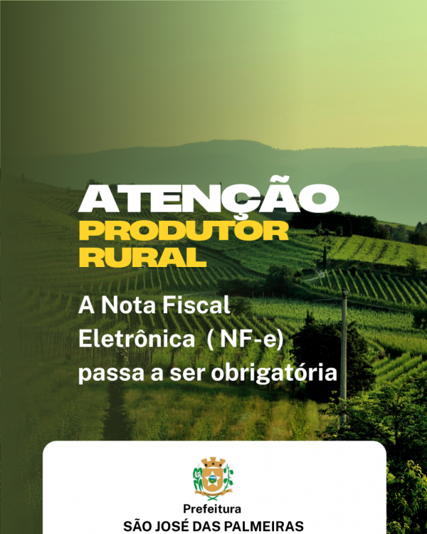 O Setor de Tributação da Prefeitura de São José das Palmeiras alerta aos produtores rurais  do município sobre a obrigatoriedade do uso da Nota Fiscal Eletrônica, que passou a vigorar na segunda-feira (05).
