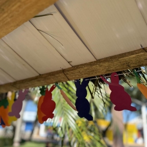 Todo o trabalho artesanal em referência à festividade, realizado durantes as atividades prestadas pelo serviço — incluindo casquinhas de ovos, coelhinhos e desenhos — passou a fazer parte da decoração festiva da Praça Central Alípio Salvador. As peças foram instaladas na manhã da segunda-feira (30).