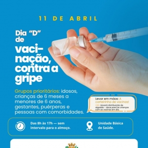 DIA D CONTRA A GRIPE: AÇÃO SERÁ REALIZADA NESTE SÁBADO (11 DE ABRIL)