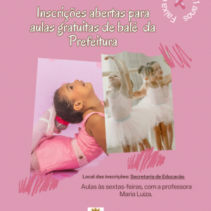 AULAS GRATUITAS DE BALÉ: INSCRIÇÕES NA SECRETARIA DE EDUCAÇÃO