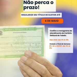 COMUNICADO: PRAZO PARA A REGULARIZAÇÃO DO TÍTULO ELEITORAL ENCERRA NO DIA 06 DE MAIO