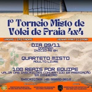 VEM AÍ O 1º CAMPEONATO DE VÔLEI DE PRAIA MISTO 4X4 DE SÃO JOSÉ DAS PALMEIRAS!