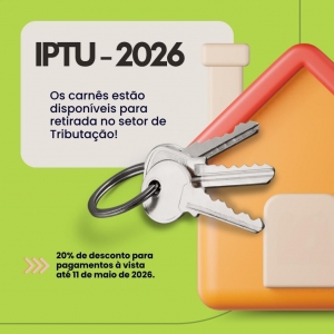 IPTU/2026: CONTRIBUINTE — RETIRE O SEU CARNÊ NO SETOR DE TRIBUTAÇÃO