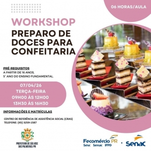 SECRETARIA DE ASSISTÊNCIA SOCIAL INFORMA: INSCRIÇÕES ABERTAS PARA WORKSHOP GRATUITO DE PREPARO DE DOCES PARA CONFEITARIA