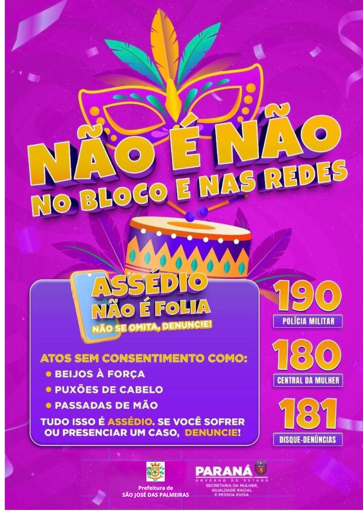 NÃO É NÃO - NO BLOCO E NAS REDES: MUNICÍPIO ADERE À CAMPANHA ESTADUAL DE COMBATE À IMPORTUNAÇÃO SEXUAL DURANTE O CARNAVAL