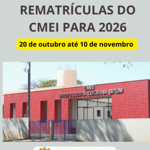 PERÍODO DE REMATRÍCULAS DO CMEI/PROFESSORA LUCIANA BRUM PARA 2026; CONFIRA AS DATAS