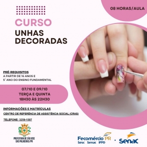 QUALIFICAÇÃO PROFISSIONAL: ABERTAS AS INSCRIÇÕES PARA CURSO GRATUITO DE UNHAS DECORADAS