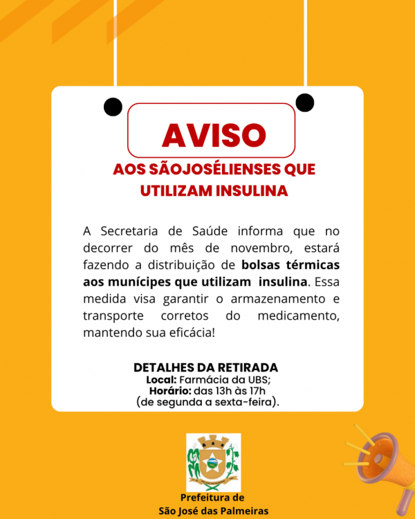 COMUNICADO IMPORTANTE DA SECRETARIA DE SAÚDE: ATENÇÃO MUNÍCIPES QUE UTILIZAM INSULINA!