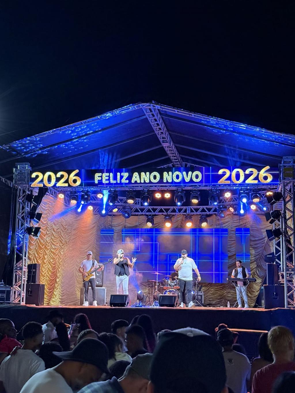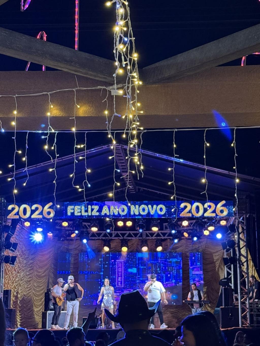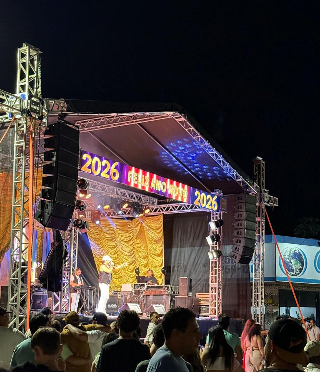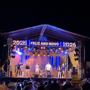 O evento promovido pela Administração Municipal, contou com a tradicional queima de fogos e show musical da banda Cowboys do Asfalto, que embalou o público na recepção de 2026.
