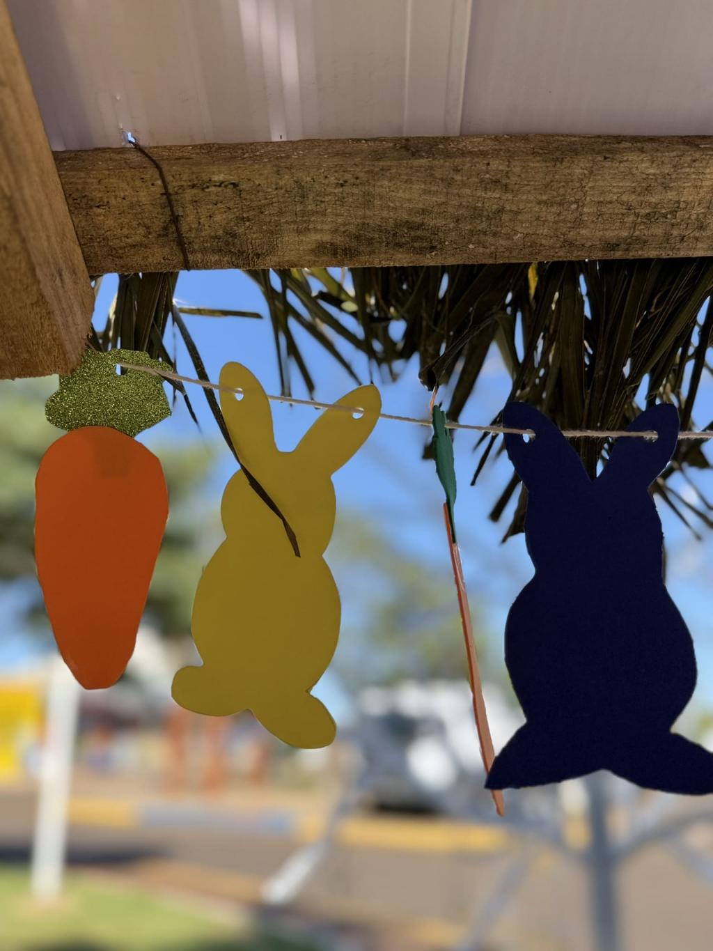 Todo o trabalho artesanal em referência à festividade, realizado durantes as atividades prestadas pelo serviço — incluindo casquinhas de ovos, coelhinhos e desenhos — passou a fazer parte da decoração festiva da Praça Central Alípio Salvador. As peças foram instaladas na manhã da segunda-feira (30).