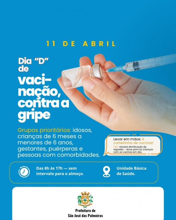DIA D CONTRA A GRIPE: AÇÃO SERÁ REALIZADA NESTE SÁBADO (11 DE ABRIL)