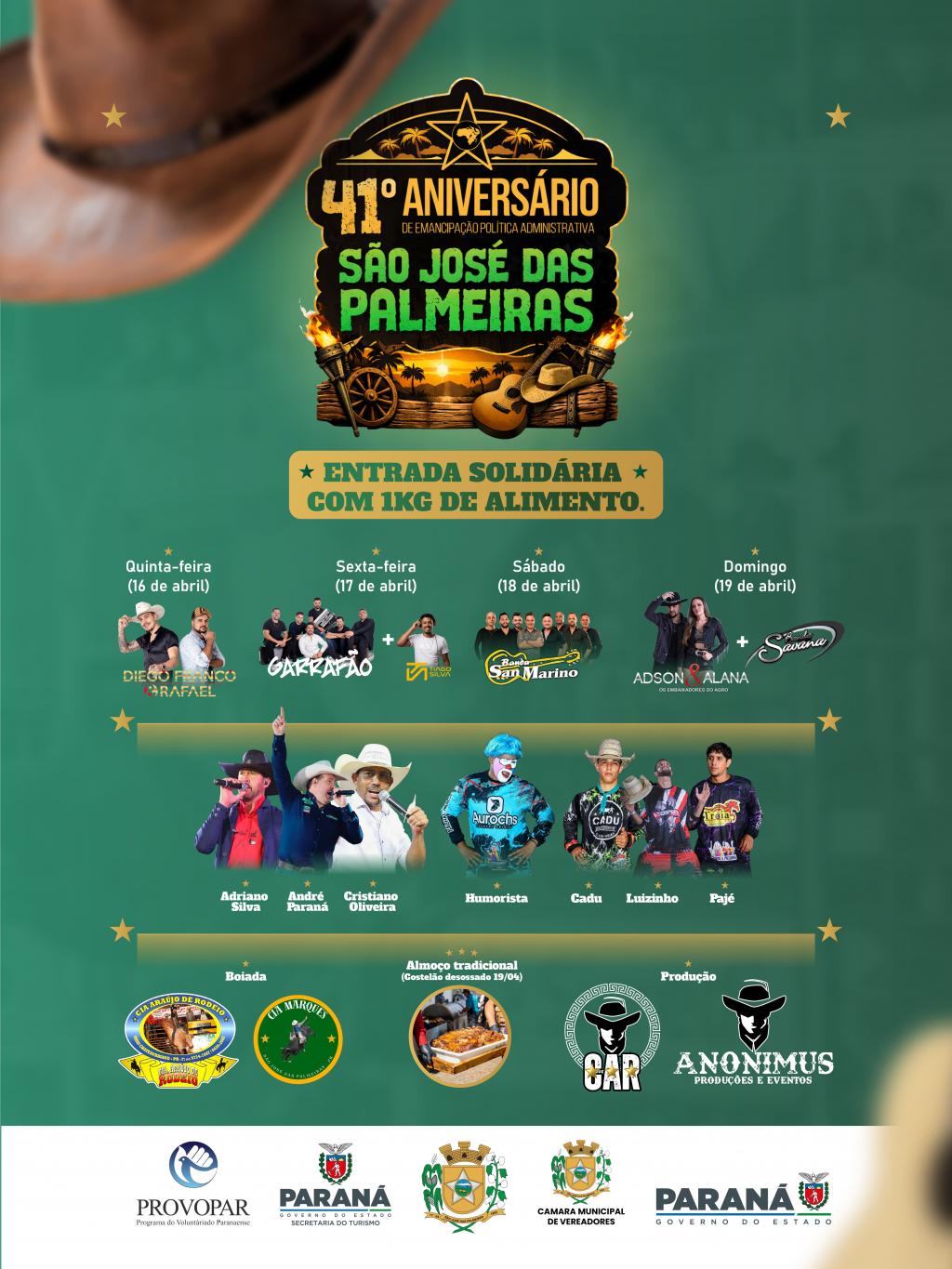 41 ANOS DE HISTÓRIA: VENHA CELEBRAR CONOSCO, O ANIVERSÁRIO DE SÃO JOSÉ DAS PALMEIRAS! (16 A 19 DE ABRIL)
